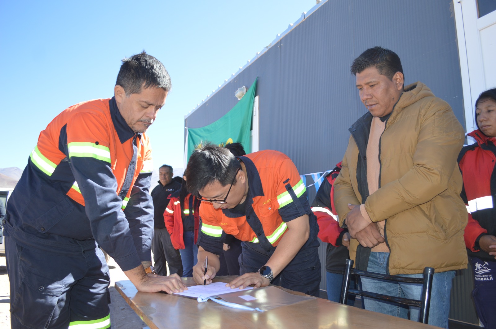 La donación se concretó en un encuentro donde participaron el Director de ESG de Zijin-Liex, Yue Xiaosong, y el Gerente de Relaciones Comunitarias, Jorge Reinoso, junto al Intendente de Fiambalá, Raúl Úsqueda, y la secretaria de Minería, Marita Ocampo.